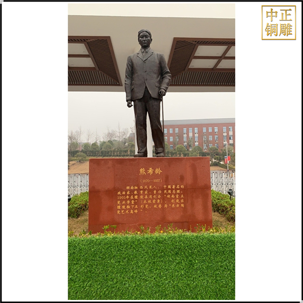 湖南工業(yè)大學陶瓷學院門前的這尊高3.8米的熊希齡人物銅雕塑,是由河北中正銅工藝品制作有限公司制作而成,這尊熊希齡人物銅雕塑高3.8米,底座高2米,總高5.8米。從最初圖紙設計到安裝完成,總共歷時2個月時間,安裝完成后得到了院長和眾多老師的一致好評。