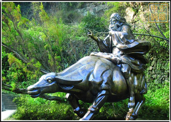 老子因騎牛西出函谷關(guān),所以在古代人物雕塑中老子像造型多以騎牛老子像為主。老子的思想對(duì)中國(guó)古代哲學(xué)發(fā)展具有深刻影響,他的核心思想是樸素的辯證法。在政治上老子主張無為而治、不言之教。在權(quán)術(shù)上老子講究物極必反之理。在修身方面老子是道家性命雙修的始祖講究虛心實(shí)腹、不與人爭(zhēng)的修持理念。