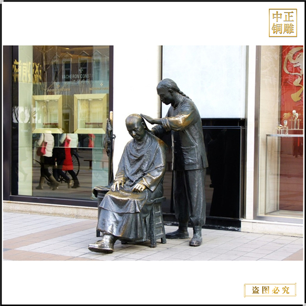 古代人物剃頭銅雕塑