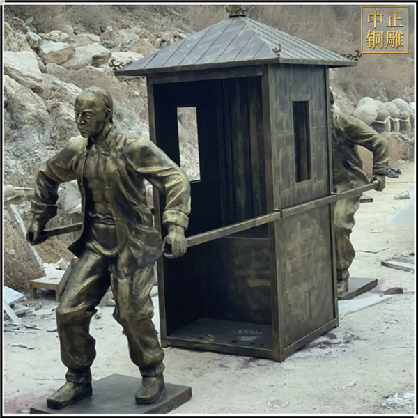 中正銅雕-抬轎子景觀人物雕塑、抬轎子景觀人物雕塑價(jià)格額、抬轎子景觀人物雕塑廠家,我公司集科研、開發(fā)設(shè)計(jì)、普通鑄造、一次性整體澆鑄、精密鑄造于一體。本公司技術(shù)力量雄厚,設(shè)備,不但重視中國青銅器原有的藝術(shù)風(fēng)格,還繼承了文物原有的藝術(shù)品味,在繼承和發(fā)揚(yáng)古老文化的同時(shí),更深一步為新老客戶定身量制各種銅制、鐵制工藝品等產(chǎn)品,曾多次受到寺廟長老和美術(shù)學(xué)院教授的好評(píng)。